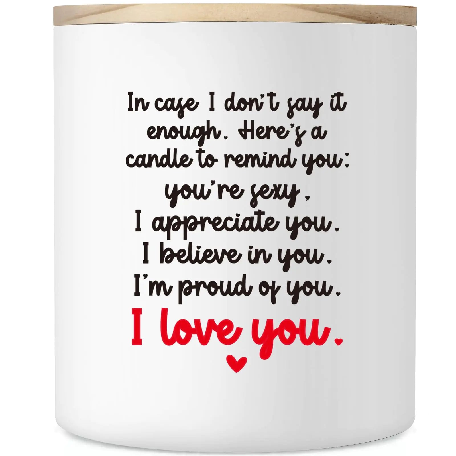 [Valentines Day Gifts for Her: "IN CASE I DON\T SAY IT ENOUGH. HERE\S A CANDLE TO REMIND YOU: YOU\RE ATTRACTIVE I APPRECIAE YOU. I BELIEVE IN YOU I\M PROUD OF YOU I LOVE YOU" heartwarming and unique messages make this Valentines Day gift ideas a great way to send wishes to your loved ones! Making it an ideas choice for gifts for girlfriends I love you gifts for her Ideal gift for boyfriend valentines day gifts for husband and wife anniversary gifts for couples birthday gifts for couples romantic birthday gift for her Natural Soy Wax and Essential Oil:This handmade candles is made of natural soy wax cotton wick and natural essential oil which is burning more long time sufficiently ensuring you can enjoy its exquisite fragrance for longer. Perfect for home bedroom living room bathroom kitchen office and so on Long Lasting Burn Time: Valentines Day gifts for women. 10 oz cotton wick candle can burns up to 70 hours. Candles will not produce black smoke and it burns smoothly and cleanly. Funny candles are versatile and can be recycled repeatedly when used up "Birthday Gift Ideas: Love gifts for her. A simple warm and heartfelt candle girlfriend ideas gifts suitable for valentines day anniversary birthday Mothers Day thanksgiving Christmas wedding thank you gifts holiday womens day" Lavender Fragrance Candle: Premium lavender fragrance candle has a soothing effect it can be used to relieve stress and improve sleep. it can also be used to make the room feel more relaxed simply delight the mood and remove the depression.A fun gift for women for a stress-free comfortable life]